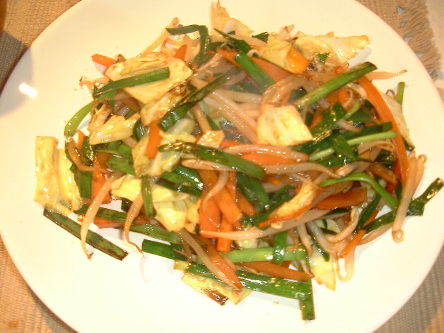 <野菜炒め> 仕事が遅かった時の定番料理です |