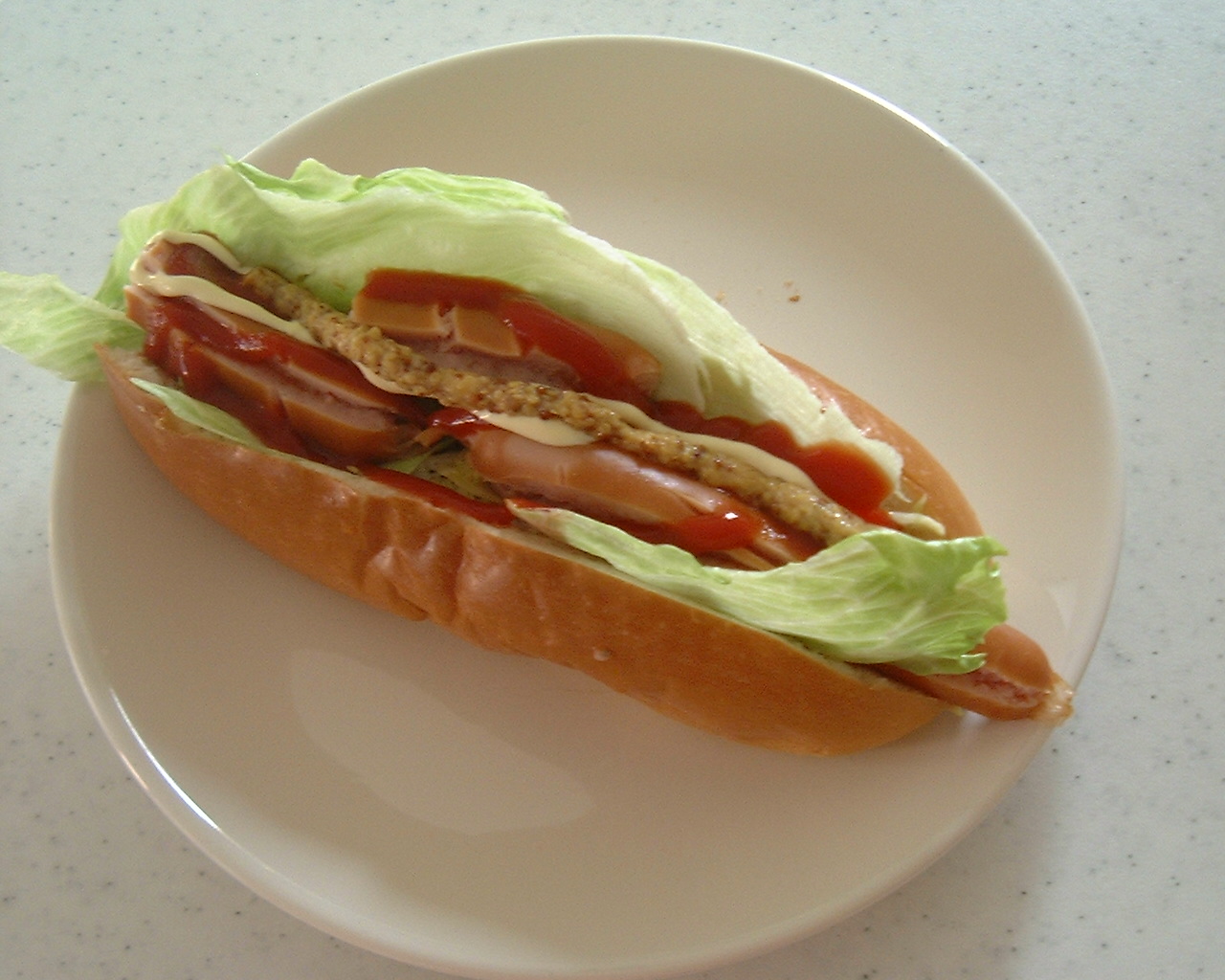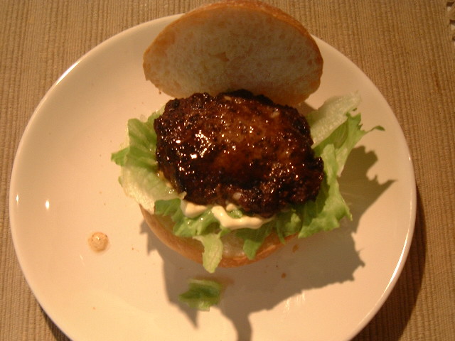<テリヤキバーガー> モスバーガーのようにレタスとマヨネーズがいっぱいです。 |