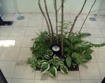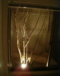 光を取り入れる中庭。慌しく準備期間もないまま家を建てたので、結構行き当たりばったりで、その場で決めてきた感が強いです。そしてこの中庭の木を植える場所もその一つ。今となっては少し風呂側により過ぎたなと少し後悔しています。またライトも大は小をかねると思い100wの大きい屋外ライトを選択。これが大きすぎて少しバランスが悪い。また直射日光が冬は当たらないので、花が枯れやすいなどなど問題点は尽きません。でも北側の部屋に思った以上に光を取り入れてくれるので本来の目的は達成されているのかな・・・・