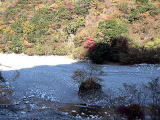 コースは川を見ながらゆっくり上っていきます。道も広くファミリーハイキングにはもってこいです。紅葉も色とりどりで見晴らしもgood!!